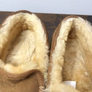 L.L. Bean Mens Suede Leather Slippers Real Lamb Fur Size 7M