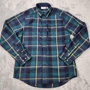 Fjallraven Fjallglim Shirt Mens Small Blue Green Plaid Button Down Outdoor Flannel