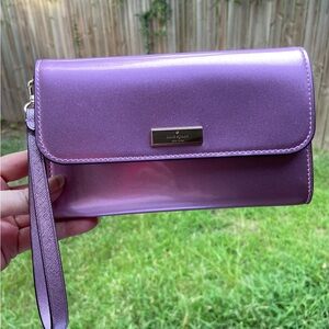 Kate Spade Leather Wristlet Clutch Glossy Purple Wallet Smooth Shiny Leather. NWOT but comes in a gift box and ready to wrap up and give!
