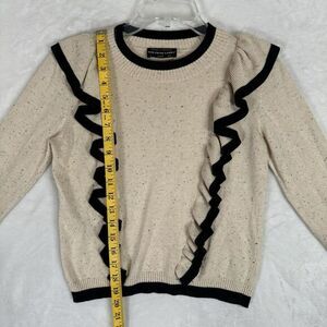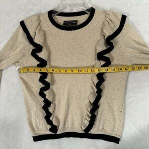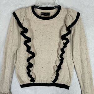 Fifth Label Ruffled Sweater Shirt Size 4 S Cropped Black Cream Preppy Victorian