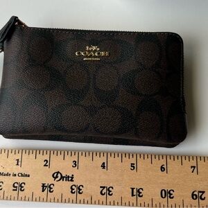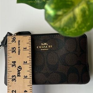 Coach Signature Brown and Black double zip wristlet in Signature Canvas