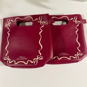 Elegant Coach pouch with iconic pattern. Gold-tone zipper accent.