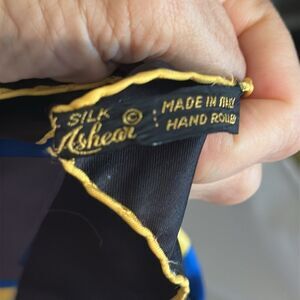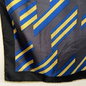 Vtg 60s Ashear Brand Gray, Black, Yellow & Blue Geometric Patterned Silk Scarf