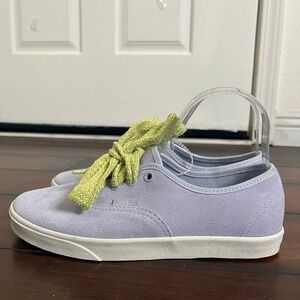 Step into casual comfort and pastel perfection with these charming Vans Authentic sneakers. The soft lavender suede upper embraces your foot with a relaxed fit, while the iconic Vans side stripe adds a touch of timeless cool. Vibrant, textured lime green laces bring a playful pop of color and a unique twist to this classic silhouette, ensuring you stand out with effortless style.