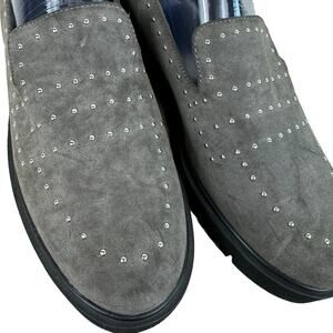 NWOT. Elena gray metal studded suede slip on loafers. Approx. measurements: Length 11", heel 1.5". Size 9.5.