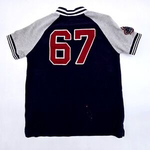 Polo Ralph Lauren "67" Six Seven Kids Navy Blue Gray Baseball Polo Shirt Size 6