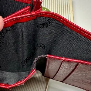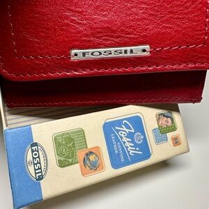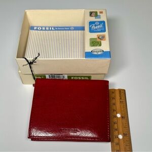Elegant red leather wallet by Fossil. Sleek and functional design.