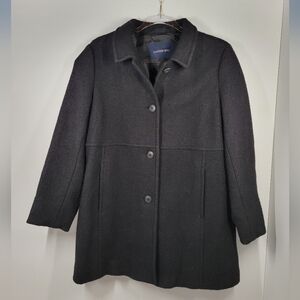 Lands' End Black Wool Blend Button Up Peacoat Jacket Women Size 12P