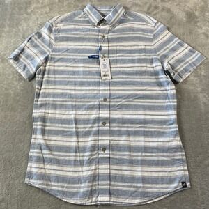 Keywords: Southern Tide, Mens shirt, Button down, Short sleeve, Linen blend, Striped, Coronet blue, Casual shirt, Summer shirt, Beach shirt, Coastal style, Preppy, New with tags