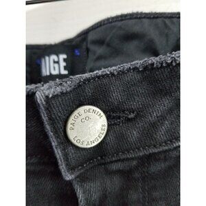 PAIGE JACQUELINE STRAIGHT BLACK JEANS SIZE 32 RAW FRAYED HEM STRETCH LIGHTLY DISTRESSED