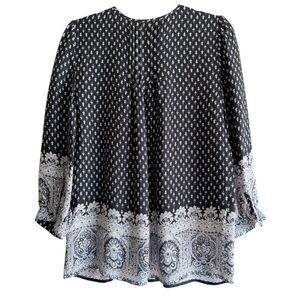 Joie Silk Boho Paisley Peasant Blouse Size Small Black White Tie Neck
