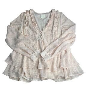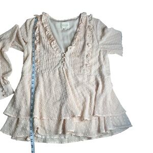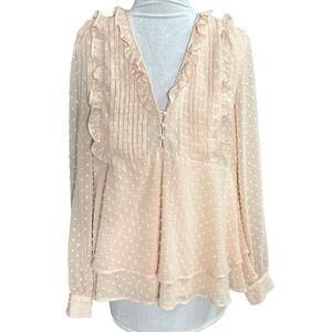 Sezane Mirta Blouse Swiss Dot Flirty Romantic Peachy/Pink Ruffle Blouse Size 36