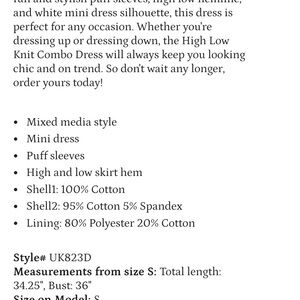ENGLISH FACTORY PUFF SLEEVE HIGH LOW KNIT COMBO DRESS SIZE SMALL