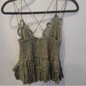 NEW $68. Free People Strappy Ruffle Olive Green Cami Top Women’s Size L NWT