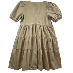 Embrace the effortless charm with this Banana Republic A-Line midi dress in a lovely khaki beige. The dress features a flattering V-neckline and trendy puff short sleeves that add a touch of playfulness to the overall look. The layered, tiered design gives it a cottagecore vibe, perfect for casual outings or your next travel adventure.
