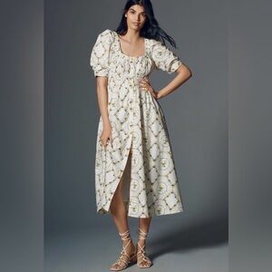 Farm Rio x Anthropologie Semi-Sheer Puff-Sleeve Dress Medium