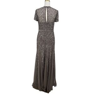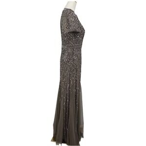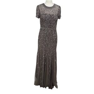 Adrianna Papell Womens Beaded Gown 8 Taupe Mesh Feminine Elegant Wedding NYE