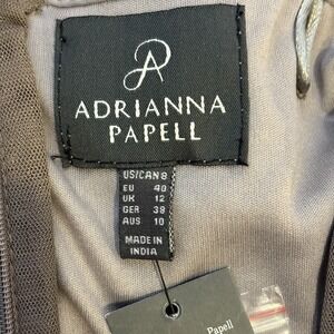 * Adrianna Papell Womens Beaded Gown 8 Taupe Mesh Feminine Elegant Wedding NYE