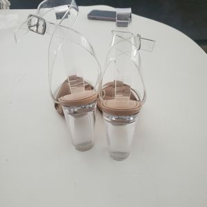 Aldo Clear and Nude Heels with Rhinestone Strap