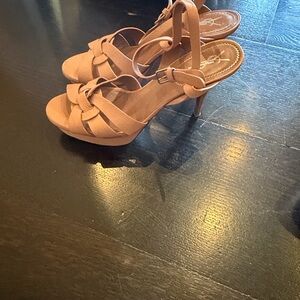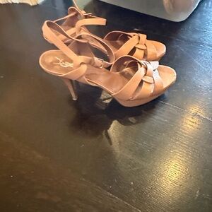 Chic Yves Saint Laurent sandals with a stylish beige hue. Perfect for versatile wear.
