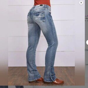 NWT. Flamingals Butt Lifting Vintage Low Waist Button Hem Bootcut Jeans stretchy fits GREAT