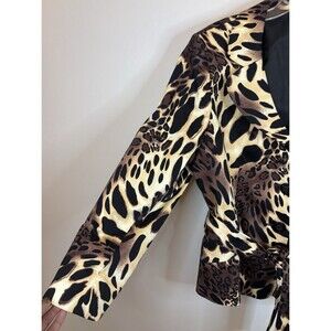 LE SUIT Leopard Print 3 Button Tie Front Crop Blazer 18 Lined Slit Cuff Jacket