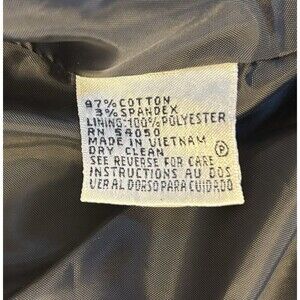 shoulder pads, faux front flap pockets, notched lapel, lined, dry clean