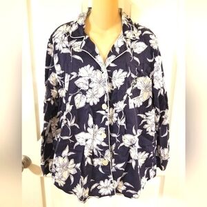 Beautiful Lauren by Ralph Lauren 100% cotton pajama top, so soft and comfy, blue floral design, size XL.