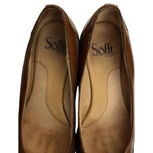 Sofft Flats Brown Leather Denim Blue Loafers Buckle Toe Womens 7.5 M Driving Moc