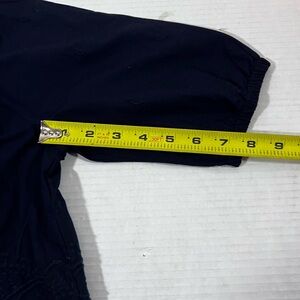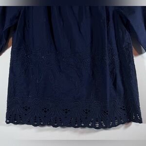 This relaxed blue blouse from Talbots features a 3/4 sleeve design with elegant embellishments. The flowing silhouette and gentle pleating at the neckline add a touch of sophistication to this versatile top.