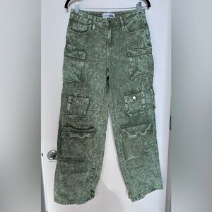 Fashion Nova Acid Wash Green Cargo Pants Size 3