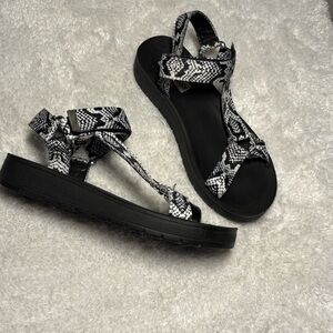 Steve Madden Black and White Snake Print Sandals Platforms Whimsygoth Witch Sz 8
