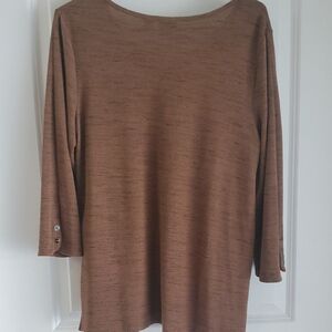 Chico's tunic with a V-neck design. Warm brown shade. Perfect blend of comfort and style.
