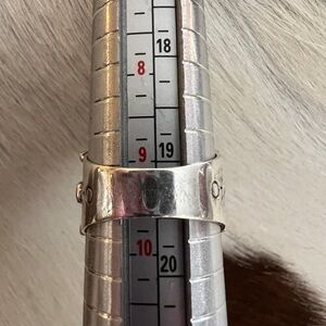 The ring is a size 9.5 and was obtained from a reliable source who frequents New Mexico Navajo artisans. The artist signed this piece as seen in the photo along with the “Sterling” stamp. The weight is a substantial 8.3 grams. I would like to add that the micro inlay work is impeccable.