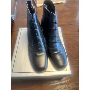 Boston Accent Elle Womens 9M Black Leather Faux Lace Side Zip Ankle Boots