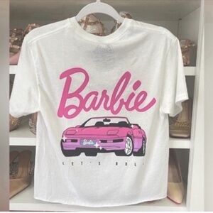 Women’s White Barbie T-Shirt with Barbie Corvette Size S/L