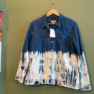 NWT LOGO Lori Goldstein Tie-Dye Ombré Denim Jean Jacket Blue White Boho Sz 4