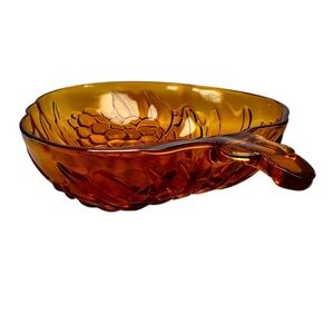 Vintage Indiana Glass Bowl Amber Heavily Embossed Grapes Fruit 13” Salad Bowl