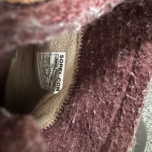Chic tan suede ankle boots by Sorel. Features a practical side zipper.