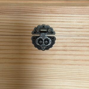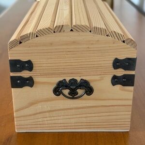 Wooden decorative chest with metal accents, combining natural wood and vintage-style hardware.