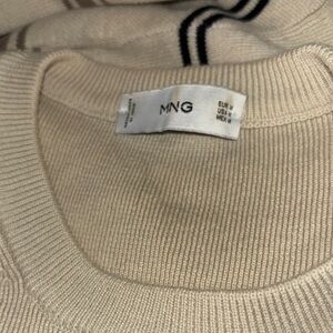 Mango Men's Cream and Brown Striped Crewneck Sweater