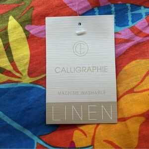 Calligraphie Flutter Sleeve Washable Linen Top Women's 2X Floral Tropical NEW