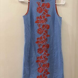 Tory Burch Blue and Orange Embroidered Dress -sleeveless -size XS - cotton blend