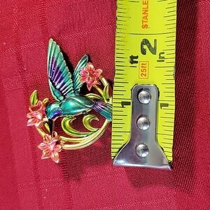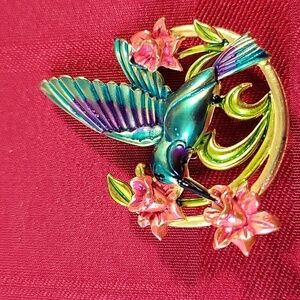 Vintage Enameled Hummingbird Pink Floral Brooch Pin