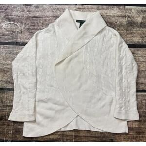 Lauren Ralph Lauren Cardigan Sweater Womens Medium Cable Knit Open Shawl