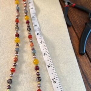 This exquisite necklace showcases a blend of vibrant beads in yellow, red, and brown hues. Perfect for adding elegance to any outfit.
