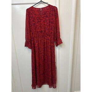 Gibson Latimer Dress Red Midi M Flowy Elastic Waist Keyhole Close Sheer Ruffles