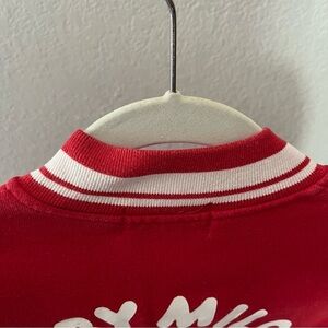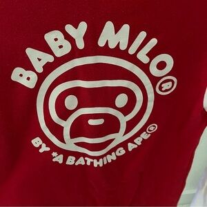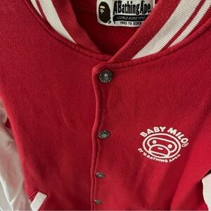 BAPE sz XS Baby Milo Red Baseball Jacket White Sleeves Fleece Bathing Ape Japan