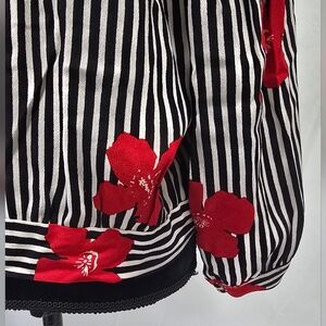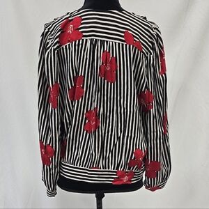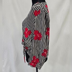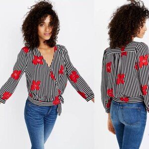 Madewell women striped wrap top candied orchids floral romantic valentine, missing the size tag so please check for measurments, it's look to be maybe XL. 100% viscose