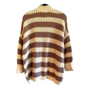 SONOMA, OVERSIZED CABLE KNIT, CARDIGAN SWEATER. WIDE, HORIZONTAL BROWN & CREAM STRIPE. SIZE M